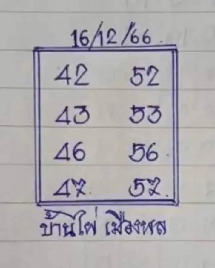 เลขสองตัว : 42 – 43 – 46 – 47 – 52 – 53 – 56 – 57